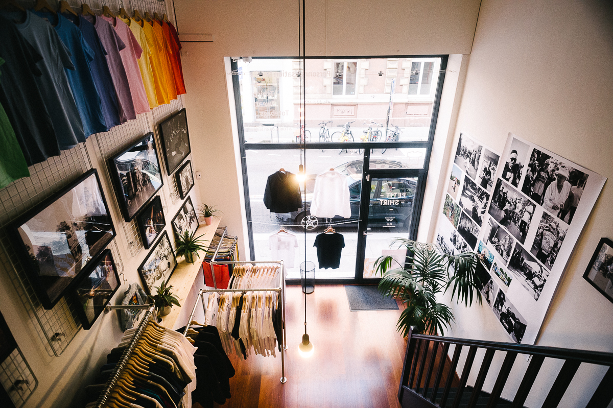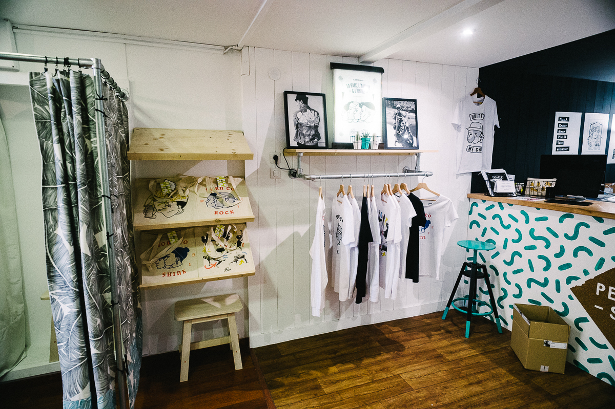 , exposition photographique dans l’espace de la boutique.